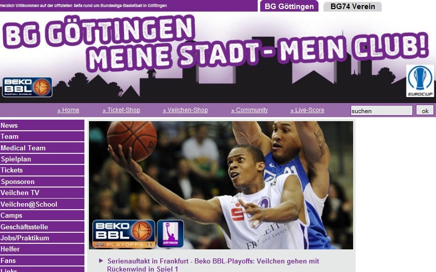 The 2008 Ivy League Player of the Year, Cornell's Louis Dale ('10) is pictured in the main image on his pro club's website. Dale and his team, Goettingen of Germany's BBL (the Bundesliga) will take on the Deutsche Bank Skyliners on Saturday in game 1 of the first round of the BBL playoffs. Dale is considered a strong candidate for the BBL's All Newcomer Team after posting impressive rookie numbers of 8.2 points, 2.4 rebounds and 2.1 assists off the bench in 17.9 minutes per game.